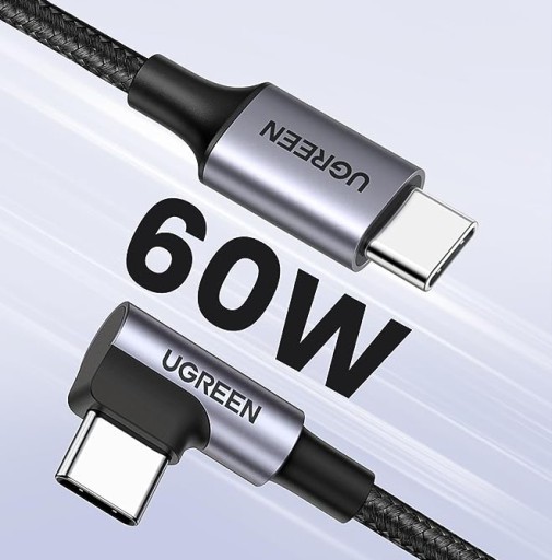 Najwyższej jakości kabel kątowy USB C - USB C 50cm 0,5m PD 60W szybkie ładowanie Ultra Charge - Quick Charge 3.0 3A