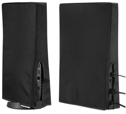 Osłona przeciwpyłowa dla konsoli SONY PLAYSTATION 5 jest zaprojektowana tak, aby dokładnie pasować do kształtu i rozmiaru konsoli, co umożliwia łatwe założenie i zdjęcie. Ponadto ma otwory i wycięcia, które umożliwiają dostęp do portów i przewodów konsoli, co oznacza, że można jej używać bez konieczności jej usuwania.