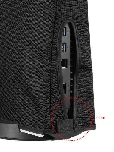 - Specjalne wycięcie w pokrowcu umożliwia wygodny dostęp do gniazd i portów.