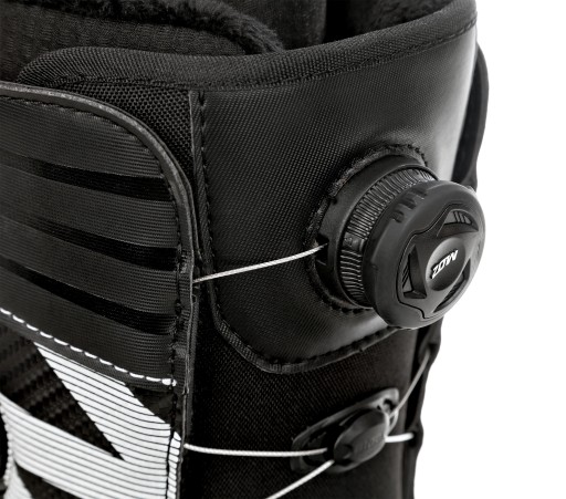 Dual MOZ System to wyższa wersja stosowanego już w butach Raven systemu MOZ. Podwójne zapięcie umożliwia precyzyjne wyregulowanie siły z jaką chcemy śródstopie oraz cholewkę buta. Tak jak w pojedynczej wersji systemu aby związać but należy wcisnąć pokrętło, a następnie obracać je w prawo (zgodnie z ruchem wskazówek zegara). Aby poluzować but należy wyciągnąć pokrętło. Dual MOZ umożliwi Ci jeszcze większą kontrolę i komfort.