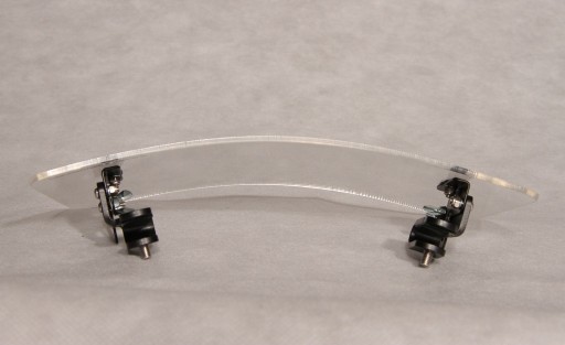 Deflektor wykonany jest z poliwęglanu litego, ciętego laserowo i metalowych uchwytów z regulacją kąta położenia w kolorze czarny mat, malowanych proszkowo.
