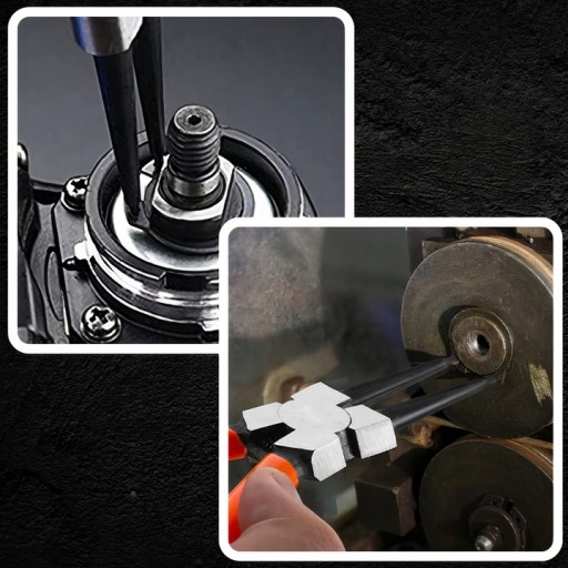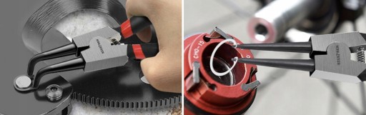 Dzięki szczypcom do pierścieni można je szybko i sprawnie montować lub demontować. Narzędzie umożliwia precyzyjne i kontrolowane działanie, co przyspiesza procesy naprawcze lub montażowe.
