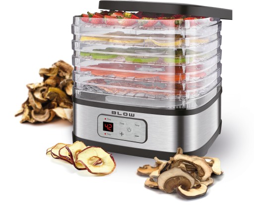 Produkt marki BLOW to pewność prostej obsługi urządzenia z którą każdy sobie poradzi. Suszarkę uruchamia się jednym przyciskiem, a czytelny zakres temperatur umożliwia bezproblemowe ustawienie tej żądanej. Każde sito jest od siebie niezależne, co pozwala na ustawienie dowolnej ich ilości, szybkie napełnienie poszczególnych sit oraz dokładne czyszczenie.