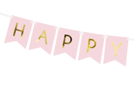✅ Baner Happy Birthday, w kolorze jasnoróżowym ze złotym napisem Happy Birthday, wysokość 15 cm, długość 175 cm.