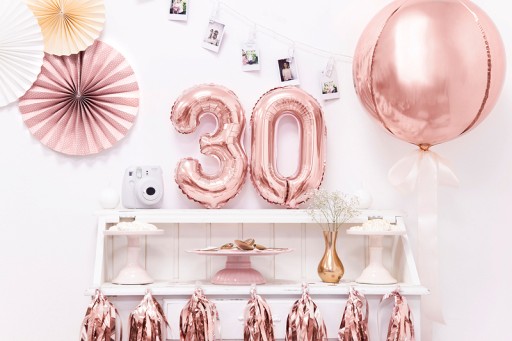 ✅ Balon foliowy metalizowany Cyfra w kolorze rosegold, rozmiar 35cm, dwie sztuki - dowolna liczba dwucyfrowa