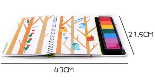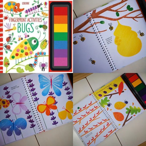 „Fingerprint Activities Animals” to kreatywna książka dla pomysłowych małych artystów. Wykorzystaj 7 kolorów tuszu i odciskami palców stwórz nieszablonowe ilustracje pełne kolorowych zwierzątek. Namaluj stado kolorowych mrówek uciekających przed głodnym mrówkojadem, wesołe zwisające głową w dół nietoperze, czy też kolorowe muszle zabawnych ślimaczków.