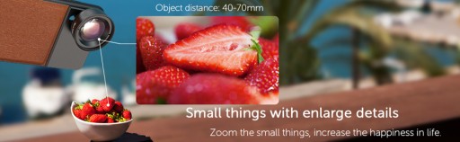 Obiektyw makro posiada duże przybliżenie, dzięki temu możesz fotografować niewielkie obiekty. Tego typu obiektyw doskonale sprawdzi się podczas spacerów, przy sprawdzaniu elektroniki lub badaniu minerałów. Gadżet jest świetny dla dzieci- łączy zabawę z nauką o otaczającym świecie. Wysokiej jakości soczewki posiadają powłoki antyrefleksyjne, które zapewniają wyraźny i ostry obraz oraz doskonalne odzwierciedlają kolory. Obiektyw jest niezwykle uniwersalny i może być używany z większością telefonów, tabletów i innych urządzeń mobilnych.