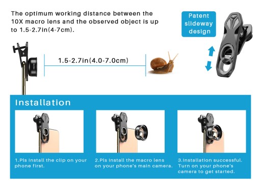 - Ogromna kompatybilność- obiektyw makro jest mocowany na uniwersalny klips, który pasuje do prawie wszystkich smartfonów, takich jak iPhone, SAMSUNG, Galaxy, Pixel, HUAWEI, Redmi, Oneplus, itp.