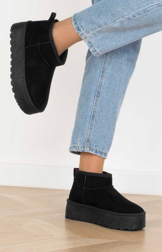 Cholewka śniegowców została wykonana z miękkiego zamszu, co nadaje im elegancki wygląd i jednocześnie zapewnia trwałość i odporność na wilgoć. Wewnętrzna część buta jest ocieplona mięciutkim i ciepłym futerkiem, które chroni stopy przed zimnem i zapewnia przyjemne uczucie ciepła.