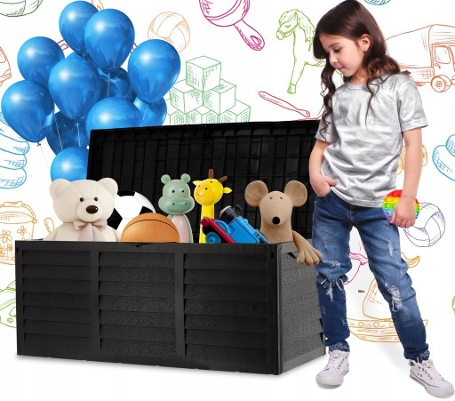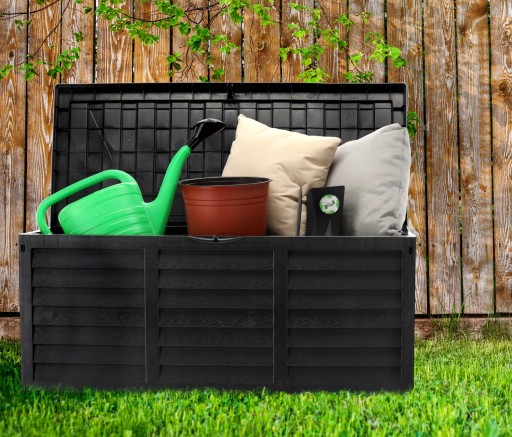 Pojemna skrzynia ogrodowa ułatwia przechowywanie w ogrodzie, na balkonie oraz wokół domu niezbędnych rzeczy które użytkujemy na co dzień (poduszki, materace, pokrowce, zabawki, narzędzia) oraz wiele innych rzeczy.