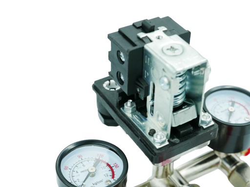 Presostat jest to urządzenie, które poza ustalonymi granicami ciśnienia włącza / wyłącza kompresor.