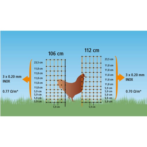 Wysokiej jakości siatka przeznaczona do budowy ogrodzenia elektrycznego, o rozstawie elementów przewodzących dostosowanym dla drobiu.Doskonale sprawdza się przy odchowie zwierząt takich jak kury,gęsi ,kaczki.Może być również wykorzystywana jako element obronny przed większymi szkodnikami m.in. lisy bądź sarny. Produkt jest bardzo prosty w montażu lub demontażu dzięki czemu można przenosić go w dogodne miejsca. W połączeniu z elektryzatorem stanowi barierę respektowaną przez zwierzęta. Dzięki intensywnej barwie siatka jest doskonale widoczna z dużej odległości zarówno dla zwierząt jak i ludzi.