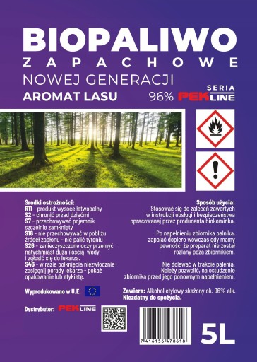 Biopaliwo marki PEK-LINE zostało wyprodukowane na bazie bioetanolu, jest on bezpieczny dla otoczenia, ponieważ podczas spalanie nie wydziela toksycznych oparów.