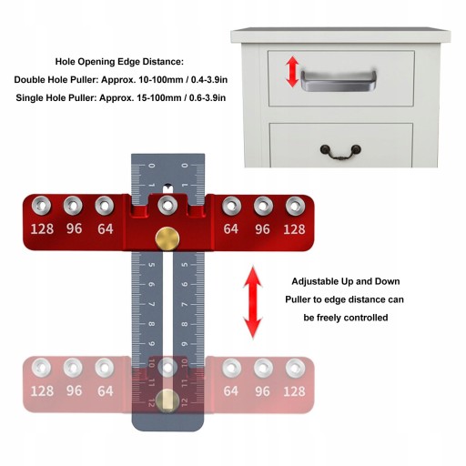 Odległość krawędzi otworu otworu: ok. 10-100 mm / 0,4-3,9 cala (podwójny ściągacz do otworów), ok. 15-100 mm / 0,6-3,9 cala (ściągacz do jednego otworu)