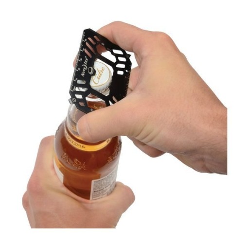 To praktyczne narzędzie zostało wykonane z trwałej stali nierdzewnej, dzięki czemu jest odporne na wygięcie, złamanie oraz rdzewienie. Posiada śrubokręt płaski, śrubokręt krzyżakowy, pięć kluczy płaskich (1/4", 5/16", 3/8", 7/16", 1/2"), kątomierz, cyrkiel, miarkę, przecinak do otwierania kartonów i opakowań, skrobak i otwieracz do butelek. Financial Tool Card ma nieskończenie wiele zastosowań i może przydać się w każdej sytuacji!