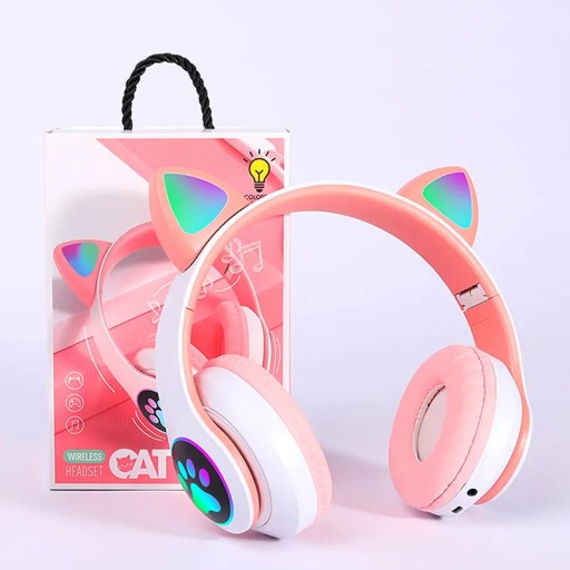 Słuchawki Kotki dla dzieci Bluetooth LED RGB Różowe - doskonałe słuchawki Kocie Uszy