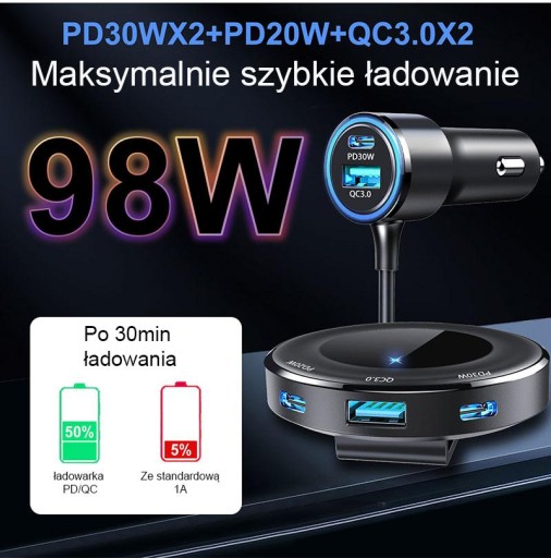 Bardzo mocna ładowarka samochodowa do telefonu 5w1 98W