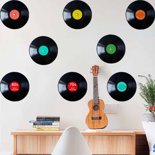 Naklejka ścienna z płytą winylową może pasować do Twojego stylu dekoracji domu w stylu retro i dodać ducha vintage.