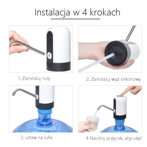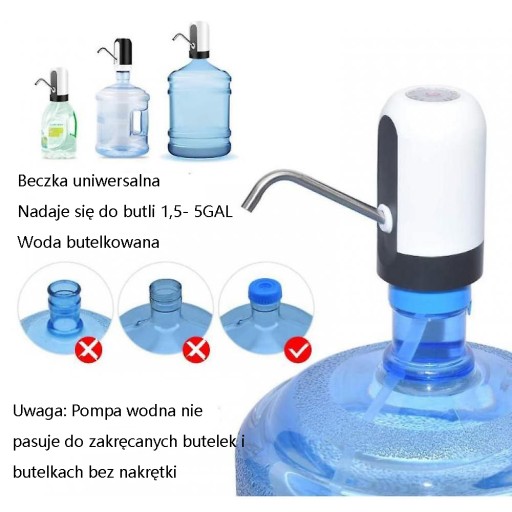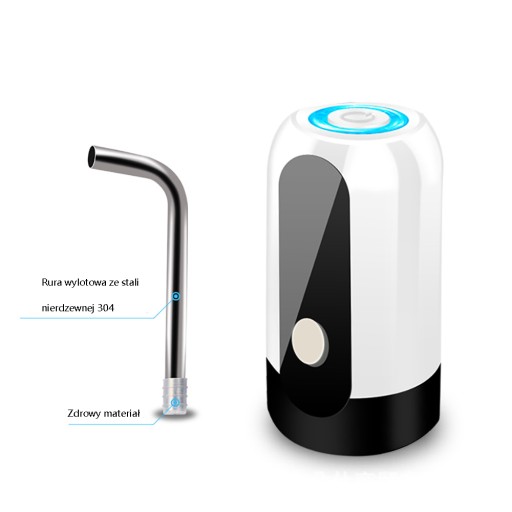 MOŻLIWOŚĆ ŁADOWANIA PRZEZ USB: Wbudowany akumulator, który może być używany przez 30-40 dni lub około 4-5 butelek wody o pojemności 5 galonów po naładowaniu. Może pracować w miejscu docelowym.