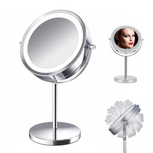 DWUSTRONNE LUSTERKO KOSMETYCZNE LED POŚWIETLANE DO MAKIJAŻU 360