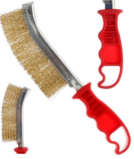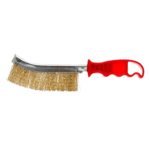 Szczotka wykonana z karbowanego drutu mosiądzowanego. Przeznaczona do czyszczenia powierzchni metalowych z rdzy, farb, lakierów, a także do oczyszczenia spawów i gwintów. Uchwyt wykonany z mocnego plastiku o dużej wytrzymałości na złamania.