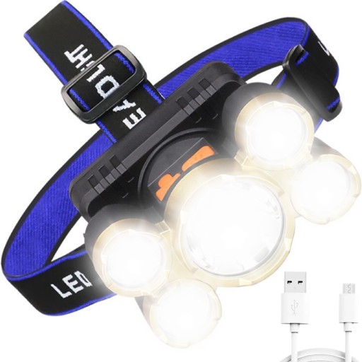 LATARKA CZOŁOWA NA GŁOWĘ CZOŁÓWKA 5 X LED ZOOM CREE MOCNA 4 TRYBY Z ALUMINIUM