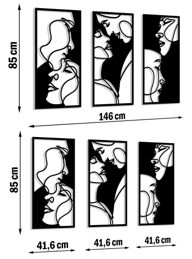 OBRAZ AŻUROWY DEKORACJA ŚCIENNA TWARZE 3D PARA SALONU PANELE TRYPTYK DUŻY