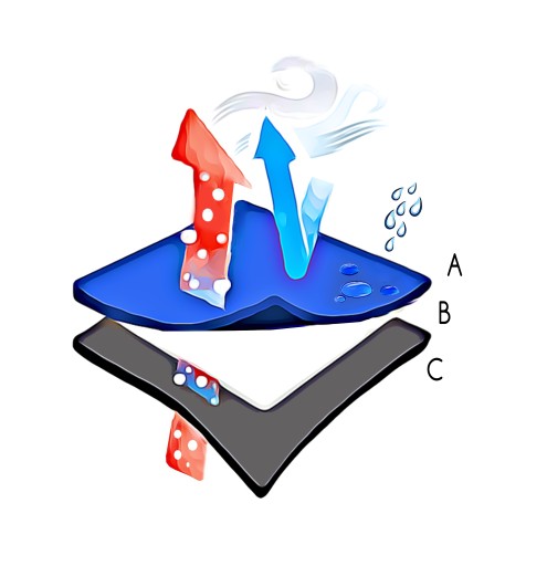 B - membrana - pozwala skórze oddychać, a jednocześnie zatrzymuje ciepło organizmu i nie przepuszcza zimnego powietrza do wewnątrz