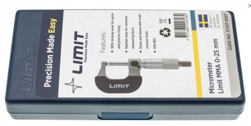 Mikrometr 0-25 mm Limit z odkuwanym kabłąkiem i chromowaną na mat podziałką