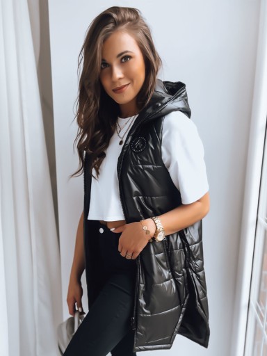 PIKOWANA KAMIZELKA DAMSKA BEZRĘKAWNIK Z KAPTUREM