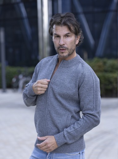 Sweter męski rozpinany na zamek z kieszeniami.
