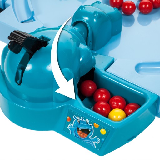 ✅Gracze, za pomocą specjalnych dźwigienek, wypuszczają kulki oraz otwierają paszcze hipciów, aby te je połykały.