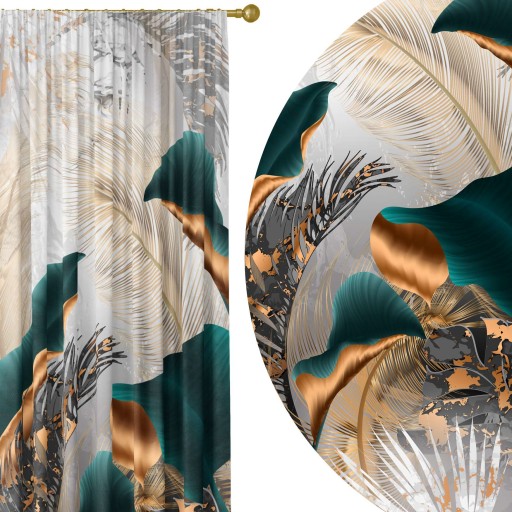 ГОТОВЫЕ ШТОРЫ НА ЛЕНТЕ ЛЯГУШКИ 140Х240 ШТОРА ДЛЯ ГОСТИНОЙ КОМНАТЫ ЛИСТЬЯ 111