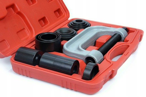 Przyrząd przeznaczony do montażu lub demontażu elementów wciskanych takich jak przeguby kulowe, sworznie szczęk hamulcowych, itp. Narzędzia wykonano z żeliwa i hartowanej stali węglowej Całość zestawu zapakowano w solidną walizkę z tworzywa sztucznego.