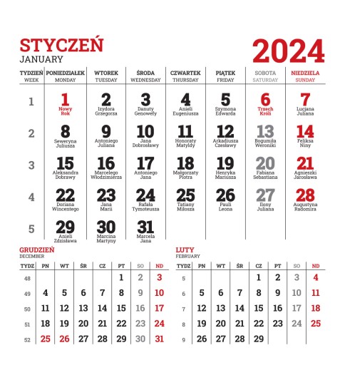 Poniżej przykładowe kalendarium na 2024 rok.