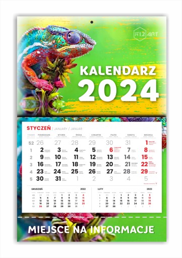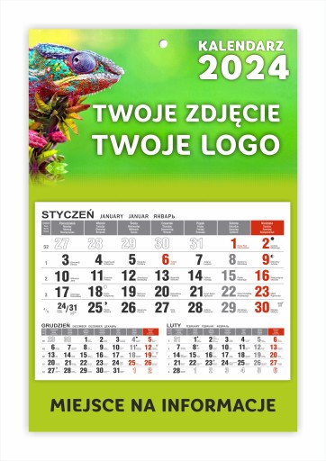 KALENDARZ JEDNODZIELNY MAGNETYCZNY NA LODÓWKĘ 2024 z LOGO KALENDARZ FIRMOWY+ PROJEKT GRATIS 1000 szt.