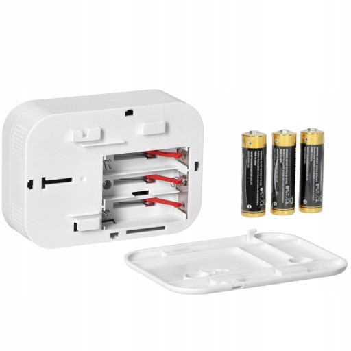 Ten bezprzewodowy czujnik działa całkowicie autonomicznie przy użyciu 3 baterii AA. Dobre baterie wystarczą na pół roku. Czujnik posiada wskaźnik niskiego poziomu baterii i gdy zacznie emitować sygnał dźwiękowy - należy wymienić baterie.