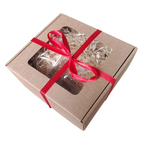 Jeśli chcesz zakupiony przez Ciebie produkt możemy zapakować w ozdobny kartonik z okienkiem, który obwiązany jest czerwoną kokardą. W środku oprócz produktu znajdzie się również ekologiczny wypełniacz.