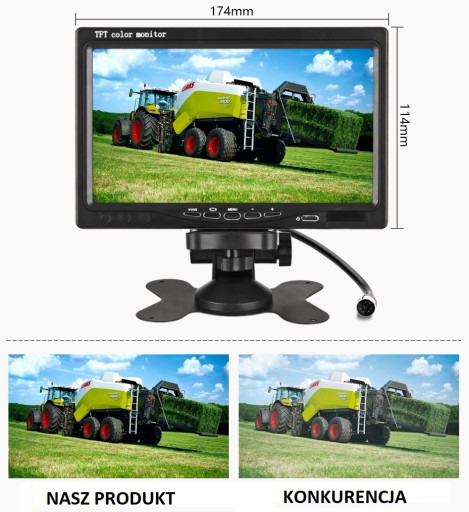 - Profesjonalny monitor z funkcją wyświetlania do 2 sygnałów z różnych kamer oraz przekątną 7 cali