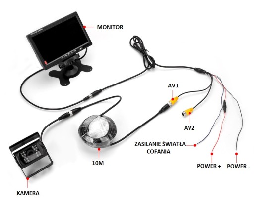 - MOŻLIWOŚĆ PODŁĄCZENIA DWÓCH KAMER JEDNOCZEŚNIE W TRYBIE AV1 AV2
