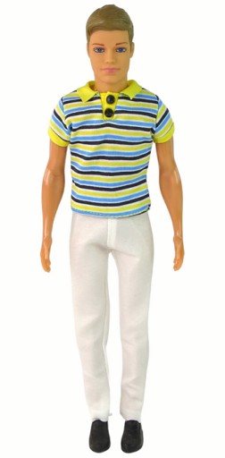 Stylowy chłopak w modnym ubraniu to wymarzony partner dla wszystkich lalek. Uroczy chłopak sprawi radość wszystkim dziewczynkom uwielbiającym bawić się lalkami. Kevin nosi białe spodnie, które nadają mu swobodnego i modnego wyglądu. Jego czarne buty są idealnie dopasowane do zestawu, co dodaje mu elegancji.
