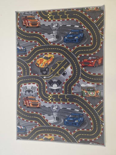 WYKŁADZINA DYWANOWA DZIECIĘCA DYWAN RACERS 97 DROGI ULICZKI TORY SZARY 4m ATEST