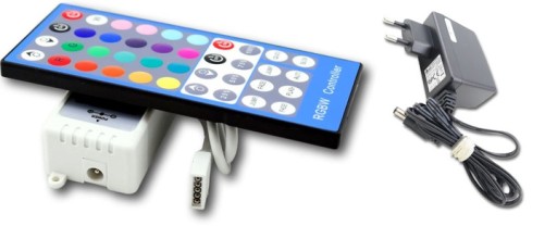 - Sterownik dedykowany do taśm LED RGBW + bezprzewodowy pilot IR 40key ( na podczerwień ),
