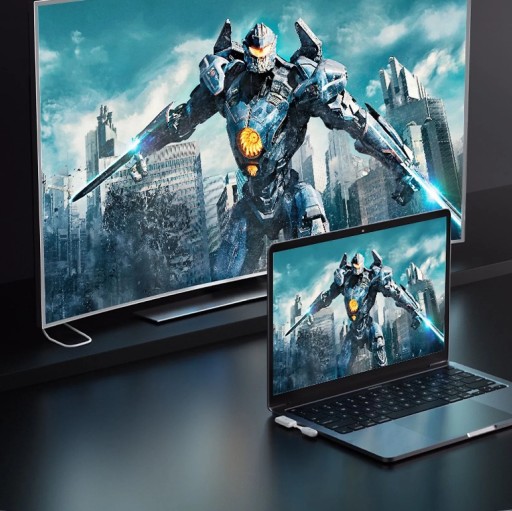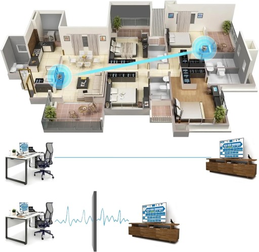 Za pomocą nadajnika i odbiornika EDUP WD9907 możesz łatwo przesyłać wideo oraz dźwięk 1080P ze źródła (np. komputera, laptopa, smartfonu z wejściem USB-C) na duży ekran lub projektor.