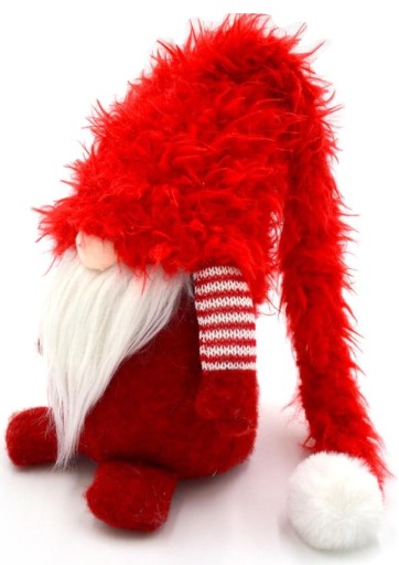 OZDOBA ŚWIĄTECZNA DUŻY STOJĄCY SKRZAT GNOM Z FUTRZANĄ CZAPĄ 86CM