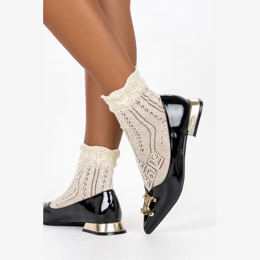BALERINY DAMSKIE LAKIEROWANE Z OZDOBĄ NA NISKIM OBCASIE WKŁADKA SKÓRZANA 36