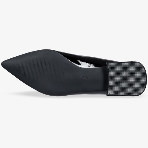 BALERINY DAMSKIE LAKIEROWANE Z OZDOBĄ NA NISKIM OBCASIE WKŁADKA SKÓRZANA 39