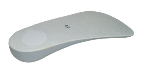 Wkładki supinujące typu klinowego, długość 3/4.Wspomagają prawidłowe kształtowanie stóp. Stosowane w przypadku koślawości pięt. Supinują pietę 5 mm.