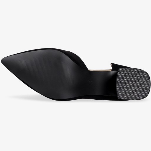 Czarne czółenka damskie model ER23WX4-B zostały wykonane z wysokogatunkowego zamszu ekologicznego, co gwarantuje doskonałą jakość, wygodę i dopasowanie do stopy. Czółenka na klocku to eleganckie i stylowe buty damskie, które są jednocześnie kobiece i nowoczesne. Ozdobny obcas w formie klocka, gwarantuje komfort, stabilność i wygodę nawet podczas długiego noszenia. Subtelne wycięcie na boku czółenek to rozwiązanie, które dodaje im odrobiny ekstrawagancji i wyróżnia je spośród innych modeli dostępnych na rynku. Szpiczasty nosek wysmukla stopę jest nie tylko uniwersalny, elegancki, ale także dziś na topie. Skórzana wkładka w butach to dodatek, który ma kluczowe znaczenie dla komfortu i higieny. Ma naturalny kolor, dlatego nie barwi stóp. Są idealnym wyborem zarówno na specjalne okazje, jak i do codziennego noszenia w biurze czy na spotkania towarzyskie. Można je nosić zarówno do spódnic czy sukienek, dodając szyku i elegancji, jak i do spodni, aby dodać nutkę kobiecości i klasy. Ten model dostępny na Casu powinien znaleźć się w Twojej garderobie.