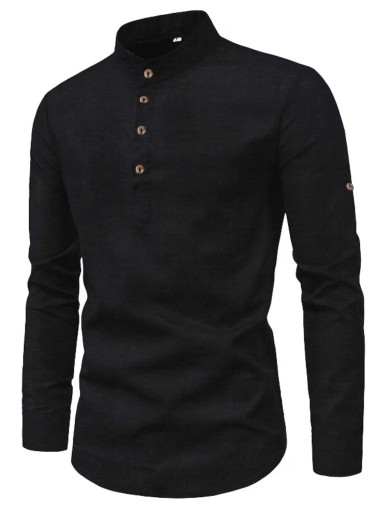 Хлопковая мужская повседневная рубашка с воротником-стойкой